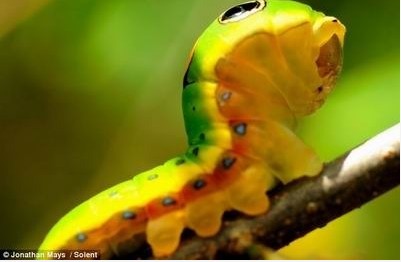 乍看它就像一条可怕的小蛇,但实际上它仅是一条不大点的毛毛虫。它通过模拟蛇的体色和眼睛,来抵御掠食者的攻击。目前,野生动物学家通过一系列高清晰图像,展现出这种奇特毛毛虫的其实面目。 (责任编辑:admin)